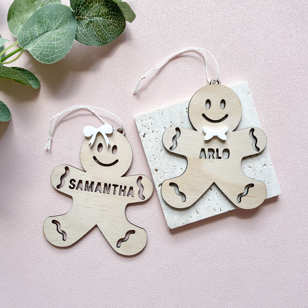 Gingerbread Boy & Girl Ornaments (Natural Wood)